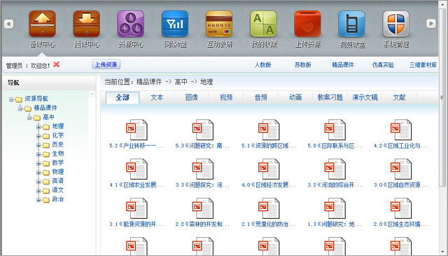 資源管理;能增、刪、改、審批量導(dǎo)入的資源或教師上傳的資源;