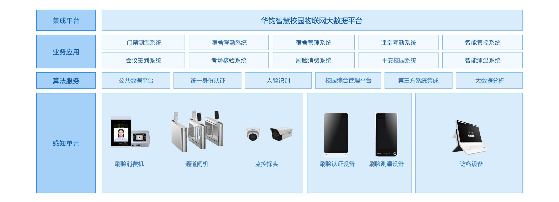 從“教學與管理”出發(fā),貼合“智慧校園”管理訴求,以“軟硬結合”技術作為立足點,融合“物聯網和大數據”多項能力,打造涵蓋“數字校園、通行考勤、平安校園、宿舍管理、課堂考勤、會議簽到、刷臉考試和人臉支付”在內的智慧校園解決方案,助力校園教務教學智能化和智慧化管理,提升校園綜合管理質量。